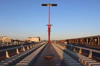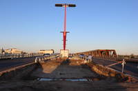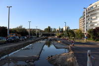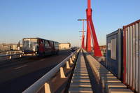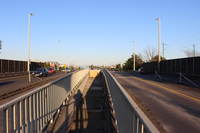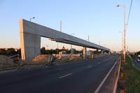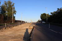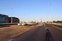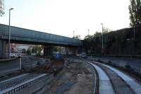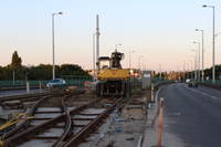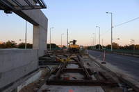 A hídon tényleg érdekes az a szerkezet; az útpálya felőli oldalon a vasvályú mellett, a belső oldalon van még egy tartó (valaminek). Valóban magasabbnak tűnik az útpályánál, úgy jó 30-40 centivel. Legalább szép lesz a kilátás a villamosból a korlátok fölött. :-)