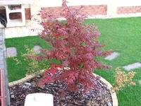 és a terasz előtti sarokba ültetem (a boróka mellé), majd közel hozzá ezt a vörös levelű dissectumot (legyen az ornatum, vagy inaba shidare, vagy bármi).