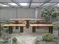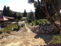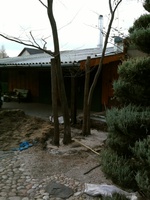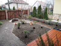 Változatlanul kövezek. Sajnos még most sem elég a szikla, még egy transzport következik. A jobb oldali fát körbe kell vasalnom, és bebetonozni, nehogy kicsavarja egy nagy vihar. Azt hittem egyszerűbb lesz, de nem. Zabálják a támfalak a sziklákat. Az errodáltakból is 9 darabot beteszek a középpontba, talán 2 héten belül elkészül. Ősszel lehet kezdeni a beültetésüket. Örökzöldeket tervezek, amik később metszhetők. Kb 30cm termőföldet terítünk, amit fűmaggal megszórunk, a tavaszra megerősödhet. Aztán a lépőkövek..., jaaj rengeteg kell. Úgy érzem sose érek a végére!:( A tiszafa (óriás bonsai) hajt, úgy néz ki megmarad, átvészelte a csonkolást.