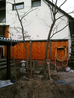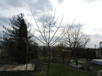 A beni otake-val is azért küszködök, mert a faiskolában aki nevelte teljesen leegyszálazta, gyakorlatilag mint egy pecabotot, látszik, hogy a magasságra koncentráltak a majdani eladáskor... Szó szerint megtekertem a törzsét, hogy valamivel lejjebb hozzam a koronát. Már igen szépen hajt, ő tart legelébb, nagyon tetszenek már most a levelei(...kezdeményei)