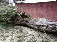 Valamint egy új "elem" is piacos, kb 12 éves többtörzsű nyírfa magonc nőtt bele, borostyánnal együtt. Kb 2.5 m hosszú akác törzs, tehát korhadástól nem kell tartani, súlyra is elég tekintélyes, elég macera volt a fotóhoz kiemelni a helyéről.