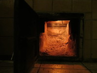A tűz közvetlenül nem éri, csak a betét által kisugárzott hő belülről, és a visszafordított, másodégéstérbe kényszerített füst kívülről.