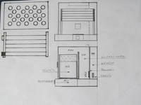 Jött az ötlet, hogy csináljunk belőle központi fűtésest, hiszen van már egy gázcirkós-radiátoros rendszer kiépítve. Ahogy utána néztem, ahhoz kellene valami hőcserélő a tűztérbe meg egy ajtó. Elkezdődtek a tervezések, meg a munkálatok és elkészült egy "rendes" hőcserélő (csőregiszter):