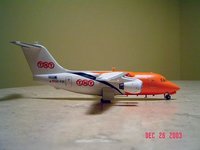Egy BAE 146-100 Australian Express festéssel. ennek a gépnek össze van kötve az orra a függőleges vezérsíkkal. 1:144 méretarány miatt kitaláltam HAJSZÁL!