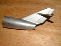 Elsőnek az OKB144 félelmetes részletkidolgozása... Borzalmas. A törzs illestéset m ár nem mutatom meg, mert valamennyire összegányoltam, és lehet inkább engem minősít így összegányolva, és nem az OKB144-et. Több glettanyag kell, mint amennyi műanyag van az egészben. Félelmetes, hogy a szárny felső felületén is vannak zárványok... Borzalom!!!