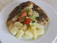 Ma nyúlhúsleves, zöldfűszeres-pikáns halszeletek olivás burgonyával, és arab kávétorta (ebből már csak egy kis részt ollóztam ki, mert nagyon nekiestünk;) :