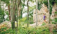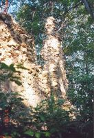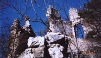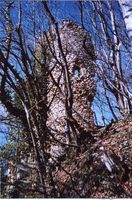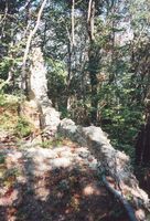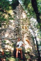 A Greben-vár szádvárunkhoz hasonlóan több várrészből tevődik össze, bár kevésbé "modern". Érdekessége, hogy erős átépítése során, a fő tornyában kápolnát helyztek el(1.kép), a kápolna az emeleti részen került kialakításra, s mára csak néhány faragott köve maradt meg. E torony mellett, a külső falban észlelhetünk egy kifolyóvályút, amely - legalábbis engem - a csővári vár konyhájára emlékeztetett.(2.kép) A 3. képen egy toronymaradvány omladozik. Jóval alatta is kiépült még egy várrész, ki tudja, talán innen figyelte a várbéli spicli, hogyan is szorgalmaskodnak odalennt. 4.kép, no, ennek a tövében aludtunk. Néhány elszórt épület, tanya áll a vár alatti völgyben, de az istennek sem kaptunk bort, így kénytelenek voltunk forrásvizet inni, amit amatőr várkutatónak nem ajánlok, pedig itt kivételesen még a kutyát is megkergettem, de hiába minden attrakció...