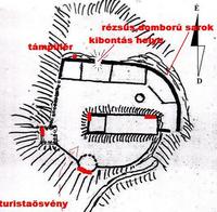 Sajnos mivel még hagyományos géppel fotóztam, erre már nem jutott filmkocka, így csak a dunántúli várbarátommal közösen elkészített alaprajzot + históriát tudom közzétenni róla.
