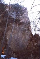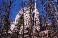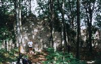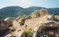 Nem írod, Ti mennyire kínlódtatok, amíg fölértetek? Mi, a Belski dol nevű forrás felől másztunk fel zsákkal - richtig az eszelős szivatás oldalon. Felérve és kiszuszogva magunkat, mi is készítetettünk alaprajzi skiccet. Lényegében hozzátok hasonló eredményre jutottunk, bár nem láttuk ennyire tisztán a belső vármagot. A meredek turistaösvény az általad kör alaprajzúnak ábrázolt, és még jelentős, kb. 10 m magas falcsonkkal rendelkező torony(?) mellett vezet be a várba. Mivel pont innen rendkívül meredek a sziklás hegyoldal, a rajzon szereplő felvezető út - szerintem - a falu(Béla) felől É-Ékről érkező vonulaton vezetett fel a vár É-i oldalához, majd a várat részben kerülve vitt a rajzon is látható bejáratig. A várat fedő felnőtt erdő, s bozót miatt nem könnyű itt nyáron fotózni, ráadásul a legösszefüggőbb külső falak javarészét kőkedvelő futónövények takarják, a kis-kárpátokbeli Fehérkőhöz hasonlóan. A Belski dol nevű forrás, mint kiderült szent hely, nem akartunk hinni a szemünknek, amikor minden(!) arra járó megállt - még a közeli kőfejtő teherautói is -, és megmosták arcukat a vízben, térdre ereszkedtek és keresztet vetettek, s csak ezután folytatták útjukat. Nem is sejtették, hogy néhány lapulevélnyire tőlük két pucér ungarise betyár fürdőzik a patak jéghideg vizében... 2.kép - háttérben lévő völgy vezet a Bélavár alá 3.kép - ÉNy-i részlet az É-i falhoz épült épületszárny maradványairól