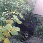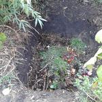 Nálam először kb fél méteres mélységet kapott, utána egyre jobban mélyítettem, most egy méteres, de ennél már nem megyek lejjebb, mert elértem a sárga agyag réteget, ami a vízzáró réteg nálunk, ennél mélyebben már megállhat a víz esős években, amúgy a napokban volt néhány kiadósabb eső, szerencsére még nyoma sincs a felesleges víznek, tudom, hogy nem helyes, de ez egyfajta víznyelőként is működik, mert a kötött talajon lezúduló víz inkább itt álljon meg, mint a kert más pontjain.