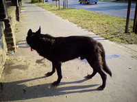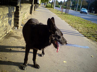 "Nagyon kedves, nyugodt, békés öregúr, az én szuka kutyámnak rettenetesen szeretett volna udvarolni. A hátulja rossz, nehezen mozog, sokat fekszik, de tud járni. Az autóba hagyta magát beemelni, nyugodtan feküdt, a fejét az ölembe fektetve pihegett szegénykém... Rettenetes volt arra gondolni, hogy máris bízik bennünk, hagyja, bármit tegyünk vele, és nem tudni, mi lesz vele... Ki fogad majd örökbe egy idős, beteg kutyát, akiről csak annyit látni, hogy fekete? Szerintem ugyan fekete németjuhász, de akkor is csak egy átlagos fekete öreg kutya lesz ott... Most két alatt helyet kell majd találni neki, mert egyből a szívembe zártam, és tudom, más is így lenne, ha megismerné őt.