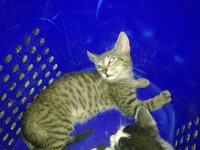 A cicák már egyedül esznek, isznak, kutyakompatibilisek és nagyon barátságosak, de soványkák.