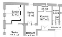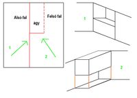 Ez pedig a második, amivel nagyobbak lehetnének pár négyzetméterrel, viszont ablakot kellene vágni meg radiátort rakni. Plusz a mostani szép faajtót kicserélni két egyszárnyúra: