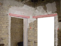 3. Ki kell bontani teljesen a bejárati ajtó feletti boltivet úgy, hogy teljes hosszban áthidaló helyettesitse. És értelemszerűen egyszer egyik oldalról berakni egy áthidalót, majd utána a másik oldalról a maradék kettőt, mivel a felette lévő falszakasz is ide terhel.