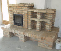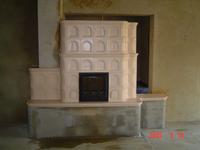 Ez rendes cserépkályha füstjáratokkal, meg minden hozzávalóval, csak éppen üvegajtóval. Sajnos a munka közben nem fotóztam, de a beépített cuccok: ytong, km tégla, samottégla, tömör cserép, meg egy csomó agyag.