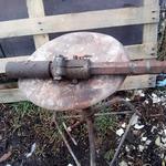 Tavasszal vettem egy új Rotalux 5 típusú kapagépet, egy hete pedig egy használt MF-70 géphez való pótkocsit. Ehhez viszont kellett a kapagépre készítenem egy vonófejet. Az új racsnis kerek beállítása is sikerült, és csináltam pár próbakört, és kisebb teherrel tettem egy rövid utat. Majd visszaérve tapasztaltam, hogy a tömlő szelep igen ferde. Ez előfordul más felniken is alacsony légnyomáskor. Benyomtam a szeleptűt és csak szusszant. Rájöttem, hogy a köpeny nem gumi, hanem kemény műgumi.