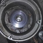 Mintha valami csapágy meghalt volna benne. Gondoltam délután szétszedem. A kuplung alsót csak a zegergyűrű fogja? A kiemelővillának a karjával lejjebb nyomom a kuplung alsót kiveszem a zegergyűrűt és aztán az gondolom én le is jön. Aztán az imbuszokat kitekerem és már szét is jött.?