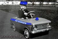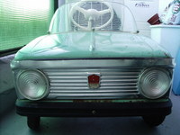 a fehér szín már megvan,sziréna is.erre kell még a kék csík és a felirat,de ezt hagyom legutoljára.a pedál,kormány szerkezet meghegesztve.kerekek moszkvics lesz mert nincs más (de jobban is tetszik).műszerfallal nemtom mi legyen,rakjak-e bele moszkvicsét vagy gányoljak valami egyedit?ülésre fekete vagy kék anyag lesz húzva.hátra a rendszám kész,a szám hasraütéssel lett kitalálva(a képen még nem az autón van)elején is filózok hogy kéne megcsinálni,de már van tervem,a foncsorok a fő hiány(eredetileg valami tömör műanyagféleség).a régi laposelemlámpa foncsorát találtam ki hogy belerakom,méretre kb jó,bár lehetne nagyobb picit.
