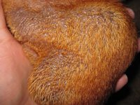 Amikor kifakad, az legtöbbször a test más részén van. Arra kell figyleni, mert a folyadék fertőz. Nem szabad engedni, hogy kaparja vagy nyalogassa, mert azzal továbbfertőzi magát. Betadinnal lehet locsolgatni, ha leszárad, akkor többnyire szépen visszaszőrösödik a seb. Az ilyen foltokat szokták kimetszeni akár még a kifakadás előtt, hogy ne tudjon továbbfertőződni.
