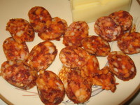 Egyébként szeretitek a csípős kolbászt? Idei szezonom nagy büszkesége, sikerült szereznem nagyon jó minőségű csipős paprikát. 10 kg alapanyaghoz 20 dkg-ot használok vegyesen (csemege-csípős), borsot nem is tettem hozzá. Szóval 3 hét szikkadás után most kiváló. :)