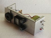 Üdv Barátim! Nos, néhány hsz.-el korábban "dicsekedtem" GDO építésemmel. Im a működő, de még nem teljes kész "kütyü": Kezdem azzal, hogy kinéztem magamnak a RT 88/2-es sz.-banW6HPH konstrukcióját, mert egy "sokat tudó" készüléknek igérkezett. (Modulálható, és monitor is.) Hát mivel a tekercsrésze átkapcsolható, és én ezt a részét a hagyományos dugaszolhatósra akartam, az elejét átalakítgattam. Valószínű ezért "nem éledt fel". (Mérőerősítője, ée HF-erősítője jól ment.) Tovább kutakodtam más kapcsolás után, és találtam hazai "magyar árú"-t. A RT 93/7-es számában leközölt Haszmann féle projektet. Ez mellet döntöttem. Illetve ennek RF, és modulátor részét építettet meg, hozzákombinálva az előző kapcsolás mérőerősítőjét (mivel nekem csak érzéketlenebb 1mA-s műszerem van), és HF erősítőjét. Pár képecske a már működő kevés mechanikai munkát még igénylő műszerről: Mint látható hálózatfüggetlenre készítettem. A forgókondenzátora végül is a méretek miatt (70X60X180) egy "Sokol" rádió 2X285 pF-es forgója. (A leírás 2x260 pF) A dugaszolható tekercsek tartják a 0.75-ös alulemezből készűlt skála-lapot. (Még nincs megfestve, és skálázva, de a megoldás nekem nagyon tetszik, mert így ugyan minden tekercshez kell skálát készíteni, de az nem lesz zsufolt. Hetényi l.-féle megoldás.A piros szigetelésű tekercs is csak provizórikus, de 107 mega környékén ezzel nagyon jön a füty. :-) A forgó mögött a függ. panelon van megépítve az 555-el a modulátor rész, és ide kerűlt a kapcsolás 100mikró+47 nF+470ohm kombinációja is. A műszer mögött az elemtartó elé kerűlt szintén függőleges panelra a mérőerősítő, és a HF-erősítő. A hátlapon az üzemmód kapcsolók, a HF kimenet és az üzemelést jelző led látható. A tápellátás 6X AA elemegy négyes, és kettes elemtartó összefogásával. Mivel a mérőerősítő, és HF-erősítő 6V-ról megy így az ki is van "csapolva" a tápból, míg a 9V-ot a NF rész és a modulátor kapja. Ajánlom megépítését, nagyon jó a leírása eredetiben is, a kapcsolás első bekapcsra indúlt. A skála tartórl még beszúrok egy képet: