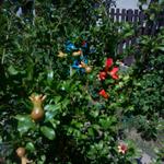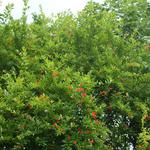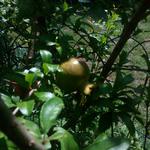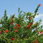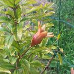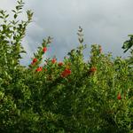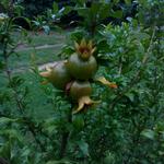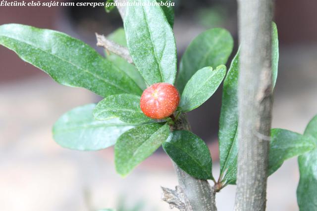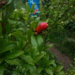 Többször írtam már gránátalmám furcsa gyümölcsképzési tulajdonságairól. Több hónapos folyamatos virágzást és nem-kötést követően a virágzás legvégén elkezd kötni és még a szórványos, nagyon késői virágokból is lesz termés. Ennek megfelelően, egyszerre vannak rajta már majdnem érett és éppen kötött gyümölcsök, sőt még virágok is.