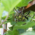 A kivim sajnos nem az igazi . Nem Hayward , hanem Montynak hívják. A jujuba talán Lang. A csatornacső melletti füge olyan nagyobbacska körte alakú vastaghajú zöld füge, a fenyőfa alatti az ujjas óriás füge szamártöke névre hallgató változata. A hurmák közül a kerekek a Tipók , a többit nem tudom.