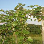 Egyetlen függőleges indát kell nagy magasságig kinevelni az első évben. Vízhiány esetén az szokott történni, hogy ez a folyamatosan fásodó szárú inda megáll a növekedésben, majd amikor ismét vízhez jut, új rügyeket indít az oldalán, miközben a tenyészcsúcsa begöbösödik és nem hajlandó tovább nőni. A továbbneveléshez vissza kell metszenünk egy aktív tenyészcsúcsú hajtásáig. Ennek a hajtásnak a kiválasztására érvényesek az általam leírt kritériumok.