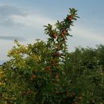 A zöldhöz még csak el tudom képzelni ,de a sárgához-ami amúgy is korábban virágzik - tuti nincs.Van némi önporzási hajlama...viszont cserébe a gyümölcsméretek eléggé heterogének..