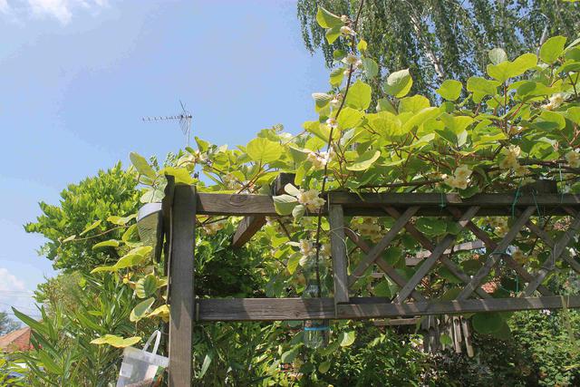 Majd a kivi... Itt a porzó múlt évben mutatta meg magát, mindössze 3-4 szem árva virágocskát hozott, viszont az idén lett rajta 1000... elképesztő mennyiségű virág lett.