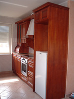 A kapott ajánlatok alapján jóval olcsóbban jött ki a fa, pedig vastagabbakat tennénk be, mint ami az "átlag". Csak ennél a konyhai résznél kételkedünk, habár más helyeken azt írják, hogy a fa és a fém tudja ugyanazt, és a lényege az, hogy valami speciális, nagy teherbírású csavarral/tiplivel/dübellel fogassuk meg a szekrényt.