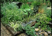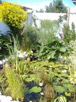 Nálam egyik sarokba van mocsaras zóna az nagyon praktikus mert 15-20 cm körüli a méylsége oda lehet ültetni könnyen..