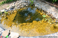 Amikor ásták a fiúk, 3 éren keresztül szivárgott bele a víz, folyamatosan szivattyúzni kellett, hogy a meder alakítása ne dagonyában történjen. Ezután feltöltöttük, illetve hagytuk, hogy teljen a kis erecskékből. Működött is egy darabig, bár a vizet folyton pótplni kellett - eleinte nem feltűnő méretekben. A növényzet vehemens burjánzásba kezdett, a beleköltöztetett amúr sem segített semmit.