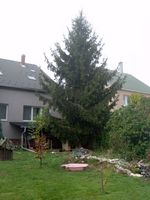 Az első karácsonyaink közül való fa, eddíg ezért nem lett kivágva, a többi már ki lett, sok volt mert mindíg gyökeres fenyőnk volt.