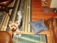 Korán reggel hisztizik Geó, kimegy a folyosóra és szaladgál ki-be! Hogy gyorsan öltözzek mert őnagysága leakar menni minnél előbb mint 8 óra:! És ugat! :)) Legalább felébreszti Anitát! :))