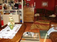 A másik a háttérben a hálószoba, azt fehérháznak hívom mert minden hófehér! Kivéve a Tv mert az is van a hálószobába! :)) + külön zuhanyzószoba + külön fürdőszoba káddal, + konyha, Kb 80 négyzetméteres az egész! Táncsak elférünk benne, a sajátom nincs ekkora :))