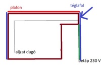 de mivel a zölddel jelzett helyen per pillnat nincs semmi, ott kéne elvinnem, de nincs kedvem bevésni a falba.igy gpszkartonbol építenék egy 3-5 centis valamit mintha ajtófélfa lenne ami mögött eltudom rejteni a vezetéket.