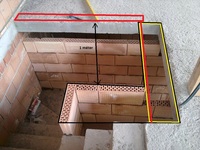 Jelenleg, ahogy még látszik valamennyire, kb 1,5 méterre beesik a fal síkjától az ajtó, nyilván lépcső vezet fel. Ezt feltölteném, és kint csiálnék lépcsőt. (A műanyag ajtó is illusztráció egyelőre.)