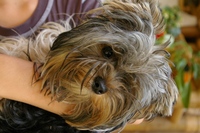 Totó itt különszámot adott elő. Ő ugyanis a strandtáskámból figyelte a körülötte zajló eseményeket, míg Kyra szépen sétált.