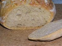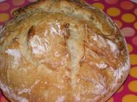 Én mondjuk nem voltam elragadtatva ettől a dagasztás nélküli kenyértől, de részben a vastag héj miatt. Amúgy se szoktam sokat dagasztani a kenyértésztát, összeállítom, addig gyúrom, míg szép sima lesz, aztán keljen magának. :) Viszont ezt a dagasztás nélkülit jénaiban sütöttem, teljesen jó volt edénynek, csak arra figyeltem, hogy edényalátétre tegyem, mikor forrón kiveszem a sütőből - meg is égett az alátét. :) És áldottam a sütőkesztyűt! ribizli