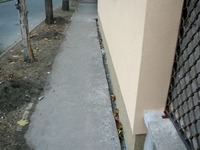 A járda maga az hót ramaty állapotban van. Az én házam előtt még istenes. Máshol annyira púpos, hepehupás, hogy a gyalogosok az utcán járnak. Előttem se megfelelő a lejtés iránya. A járda meg a lábazat közötti keskeny sáv az általam lett kiszedve, mert a lábazat lett hőszigetelve és kellett a hely a melóhoz. Az a pár centis sáv maradt, amit átmenetileg be kéne tömnöm úgy, hogy a háztól lejtsen a meglévő járda irányába.