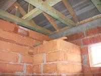 gerendák 70-80 cm -enként vannak, ami felett lambéria van lerakva. (természetesen utána párazáró fólia szigetelés és megint fólia, majd 5 cm-enként lécek vannak lerakva amin a padláson lehet közlekedni) lásd képek: