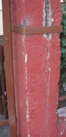 Az oszlopot össze vissza mázolta az előző tulaja, 2 centis átmenő lyukakat csinált rajta, meg van picit csavarodva (4 ilyen oszlop tartja a tetőt és a tető újkori mozgása kicsit csavart rajta), mindezekre ráadásul gyalulatlan fa, szóval irtó ronda. Vmit csinálni kell.