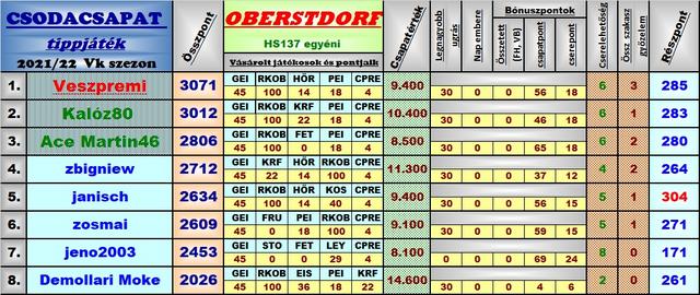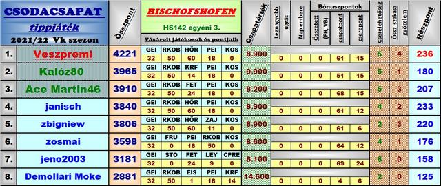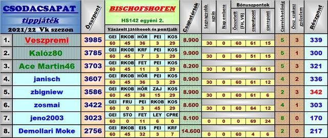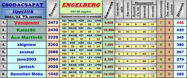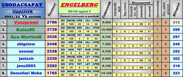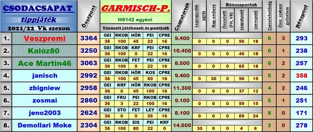 Geiger 3600 Freund 700 C Prevc 600 R Kobayashi 4100 K. Peier 100 Összesen: 9100, maradt 5 csere |