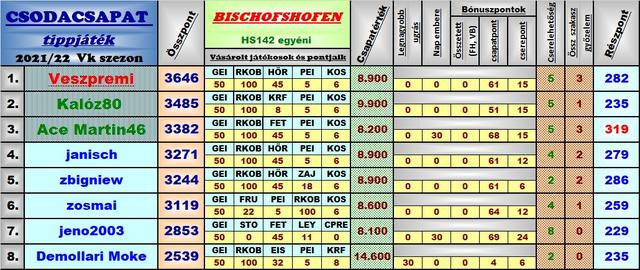 Geiger 3600 Freund 700 Kos 100 R Kobayashi 4100 K. Peier 100 Összesen: 8600, maradt 4 csere |