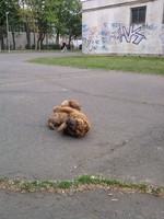 Iszonyatos állapotban van fizikailag is a hátsó 2 lába iszonyat,a füle gyulladt, erőnléte -200, és úgy tűnik ismét vemhes, jövő héten műtik... Az, hogy a haverunk amikor hazavitte 5x fürdette és kezelte le bolhairtóval, mert hemzsegtek benne + 12 kullancsot szedett ki belőle az már tényleg csak hab a tortán. Mindezek mellett, egy nagyon barátságos kiskutya, Angievel egyből egymásra találtak, együtt bóklásztak a futiban. Nagyon kíváncsi vagyok , hogy mennyi idő alatt lesznek képesek belőle kutyát faragni. Szerintem minimum 6 hónap, de azt mondták optimista vagyok.