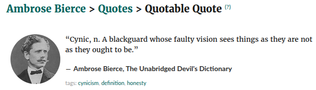 a cinikusag elso lepcsoje hogy leszarod mas velemenyet. ..vagyis felismered a sajatod ..
