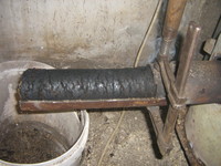 Látom nagyon szépen haladtok a gép elvi összeállításával, egyesek már a gyakorlatban is jeleskednek. Csak én vagyok lemaradva mint a borravaló. Én már letettem a hidraulikás módszerről, de ami egyre jobban izgatja a fantáziámat, az a dugattyús megoldás. Lényegében ugyanaz mint a hidraulika, csak nincs vezérlése. Egy dugattyú előre-hátra mozgása adja a löketet, egyben a tömörítéshez szükséges erőt a csőben lévő forgács számára. Szereztem egy áttételt, ami enyhén szólva brutális erős. Ha az egyik felét meghajtom, a másik nem csak gyorsabban forog, de az erőt megsokszorozza. Így egy kisebb teljesítményű motor is megteszi. Akár még egy mosógépé is. Szilárd vázat és egy nagyon erős, lényegében az egész gépezet lelkét adó dugattyút képzeltem hozzá. Már próbálkoztam manuális módszerekkel letesztelni, hogy működhet-e, és eléggé meglepődtem. Ugye minél hosszabb a cső amin átpréselem, annál tovább hat rá a súrlódás, tehát annál tömörebb lesz. Csak minél hosszabb a cső, annál erősebben kell rajta átpréselni. Így hát a gyerekes próbálkozásom a kalapáccsal csődbe ment, de mikor a fent említett áttételhez hasonló módszerrel próbálkoztam, de csak kézi módszerrel, már jobb volt a tapasztalatom, egész brikett kinézető valamik jöttek ki a csőből, de mivel az csak 20 centis volt, még nem tökéletes.