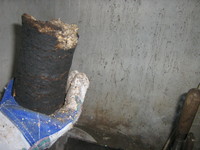 ez egy vekonyfalu 100as cso, olyan 3mm a falvastagsag, valami speci vegyipari cso lehet, speci bevonattal, nagyon budos, ha hegesztjuk. szoval beveses kilove. hossza jelenleg 50 centi korul (az adagolonyilas elott), ha szukseges, meg lehet toldani.