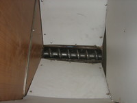namost elkeszult a csigas brikettalom elso proba prototipusa. A gondom az, hogy a csiga ugyan gyonyoruen betep mindenfele gazt, aztan nem tolja elore, hanem magaratekeri. Ill. egy fordulat utan kikopi, hogy csak ugy spriccel. 45-os tengelyen, 100-as csoben van a spiral, a fal es a csiga kozott 1-2-3mm van. 10cm-es a menetemelkedes, 3 menet, olyan 1.5 menetig jut az anyag, oszt ott cirkulal. kb 200/perces fordulat. Megneztem husdaralot, ott a cso belseje erdes, igy nem tud a huspep korbefordulni a csoben. lehet, hogy itt is valami huzagolas-szeruseg kene? otletek?